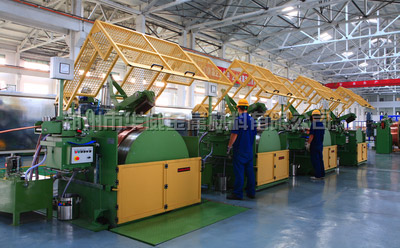 華威金屬材料有限公司擁有的電車線巨拉機進線直徑可達Φ30mm,成品截面積為80~180mm2,可以直接拉拔成品,也可以開坯拉拔后再拉拔成品,運行速度20~90m/min。