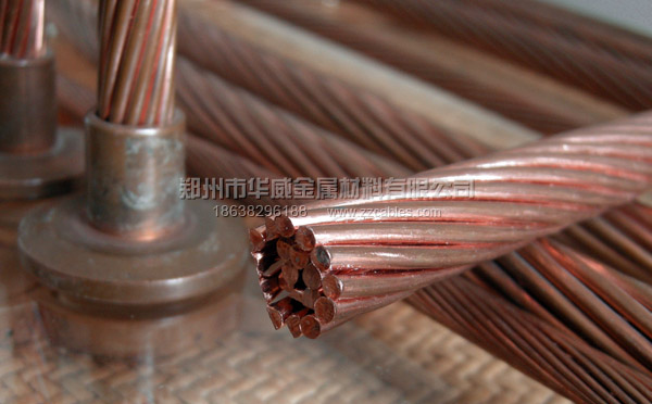 華威金屬材料有限公司生產的硬銅絞線全部采用含銅量99.99%的高純度純陰極無氧銅桿,這樣可以保證銅絲性能的穩定,連續性能優。單絲采用高速連拉連退工藝,在拉制銅絞線單絲的過程中直接退火,全程由電腦控制,單絲質量穩定可靠。絞合中采用高速籠絞機退扭絞合,絞合的過程中采用獨特工藝,絞合后的成品硬銅絞線圓整、順直,結構緊密,無散股現象,可以方便各種后續的壓接和擠塑加工,生產出來的裸銅絞線性能完全符合國標要求和歐盟電工標準。